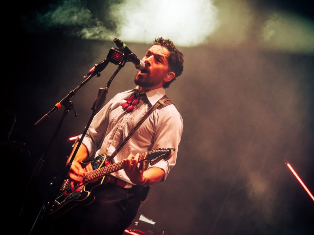 El inicio fue toda una declaración de intenciones: el vocalista sorprendió al público al aparecer en la torre de sonido frente al escenario para interpretar el primer tema «La Verdad» en formato acústico. Desde ese momento, la Plaza se entregó por completo a un concierto que combinó temas de su último álbum, Santa Trinidad, con algunos de sus grandes éxitos anteriores.